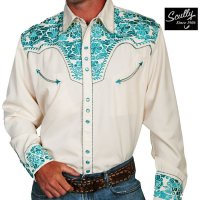 スカリー ウエスタン 刺繍 シャツ(長袖/クリーム・ターコイズ)/Scully Long Sleeve Embroidered Western Shirt(Men's) [PYTA04]