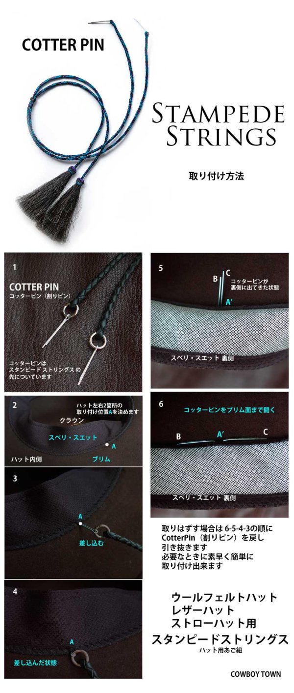 ハット用 あご紐 馬の毛 ホースヘアー スタンピード ストリングス ブラック/Horse Hair Stampede Strings(Black)