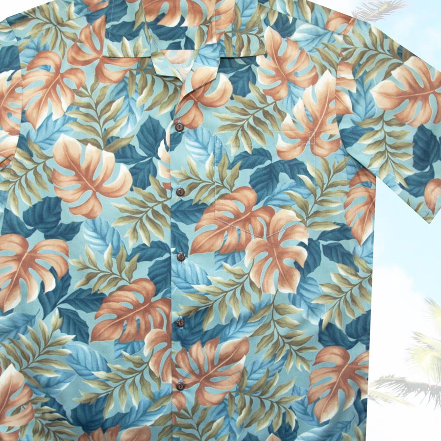 アロハシャツ ハワイアンシャツ ブルー・ブラウンリーフ/Aloha Shirt(Blue) [CKAT30]