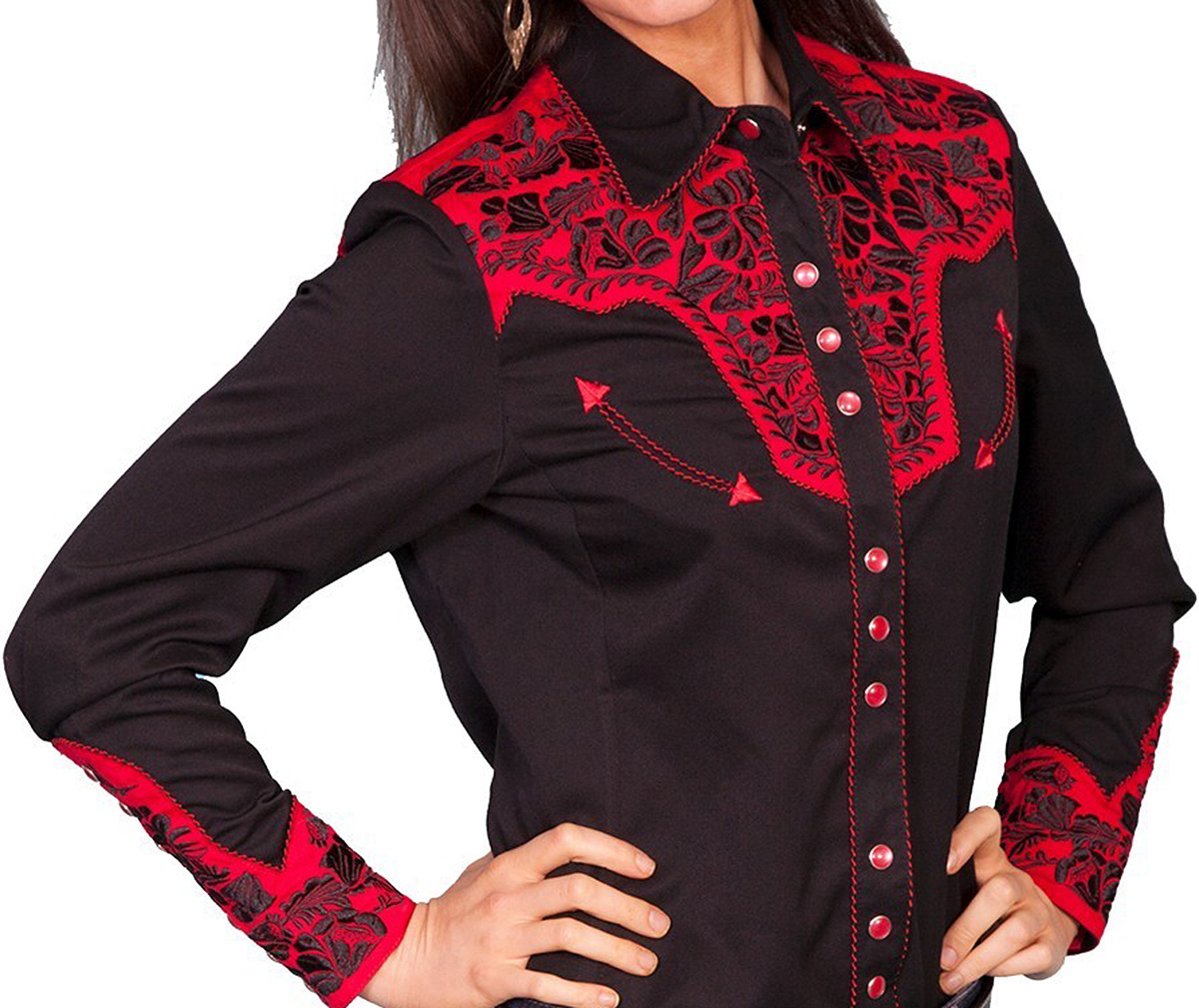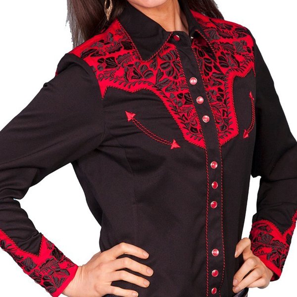 スカリー 刺繍 ウエスタン シャツ(長袖/ブラック・トマト)/Scully Long Sleeve Western Shirt(Women's)