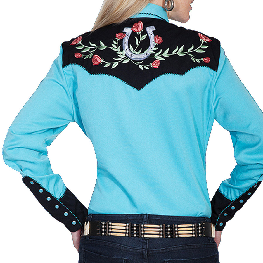 スカリー 薔薇と蹄鉄刺繍 ウエスタン シャツ(長袖/ターコイズ)/Scully Long Sleeve Western Shirt(Women's) [TYWA18]
