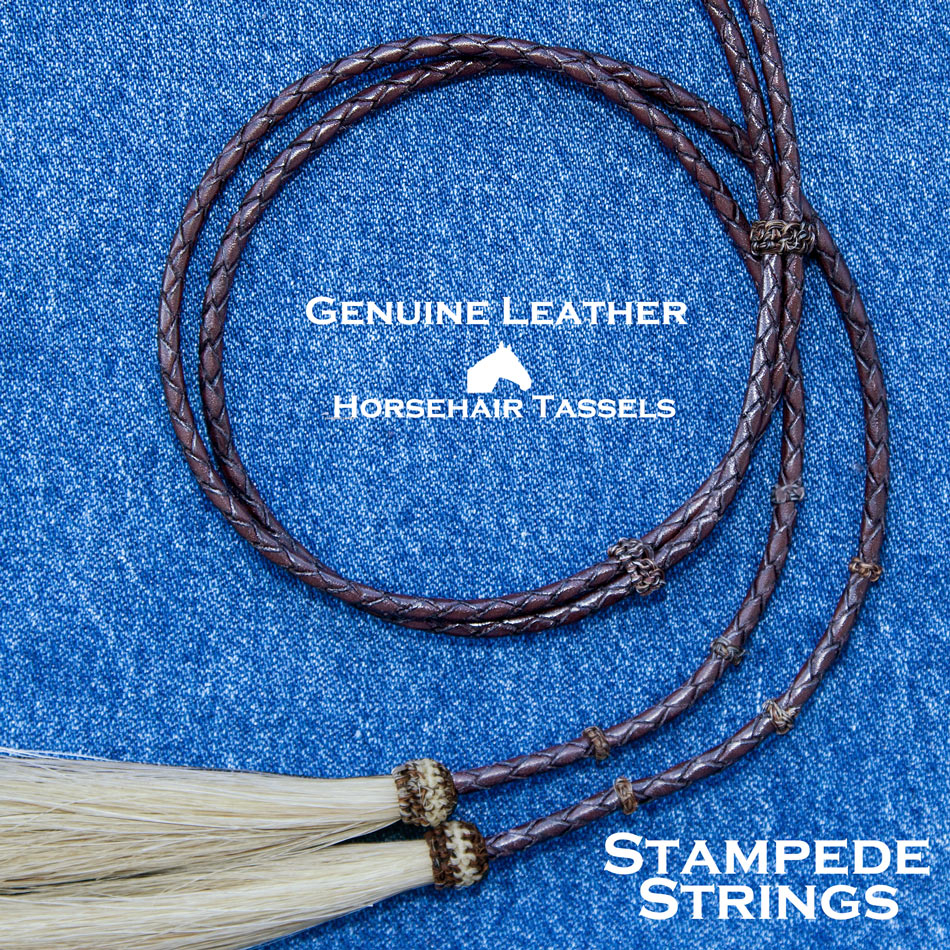 アメリカン ウエスタン レザー&ホースヘアータッセル スタンピード ストリングス ブラウン・ナチュラル(ハット用あご紐)/Leather w/horse Hair Stampede Strings