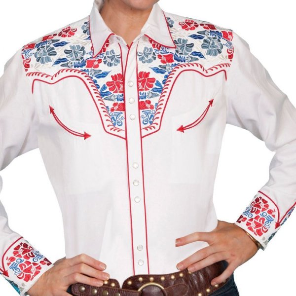 スカリー 刺繍 ウエスタン シャツ(長袖/ホワイト・フローラルマルチカラー)/Scully Long Sleeve Western Shirt(Women's) [WSAE64]