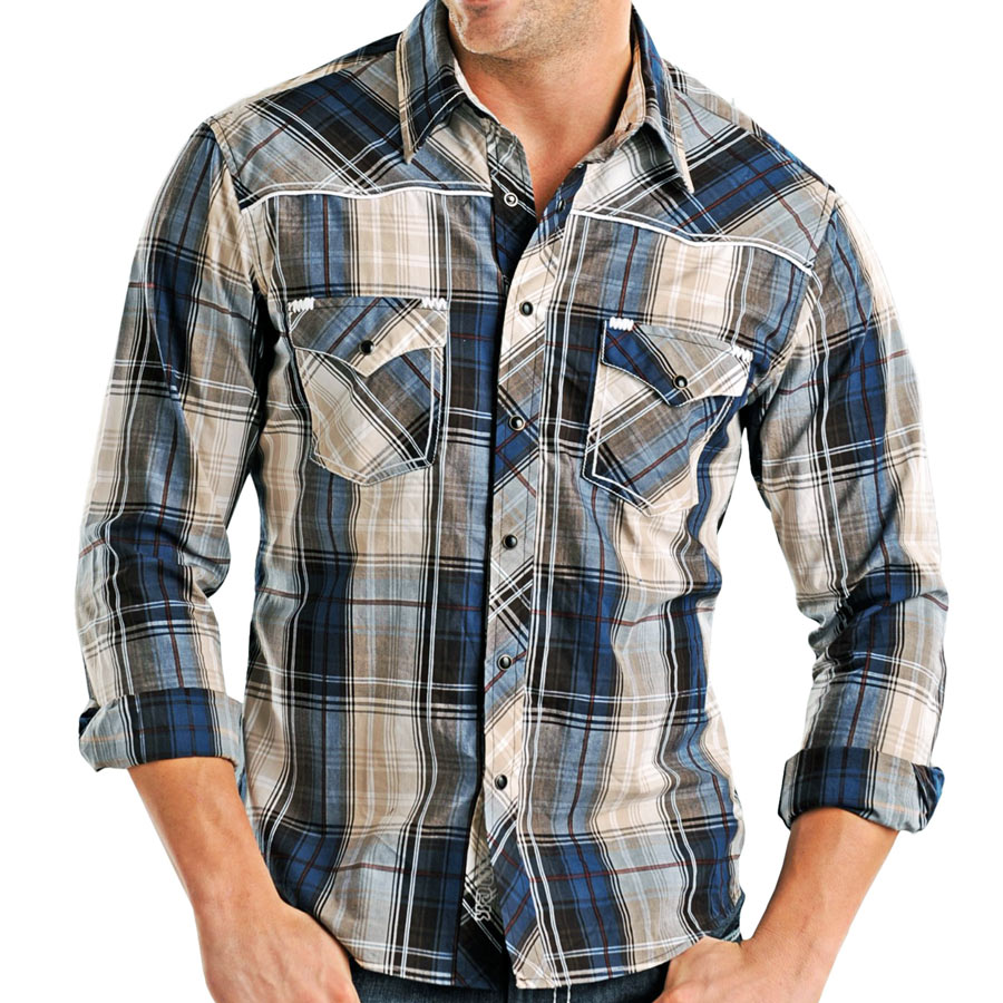 ロックンロールカウボーイ ウエスタンシャツ ブルー・ブラウン(長袖)L/Panhandle Slim Long Sleeve Western Shirt