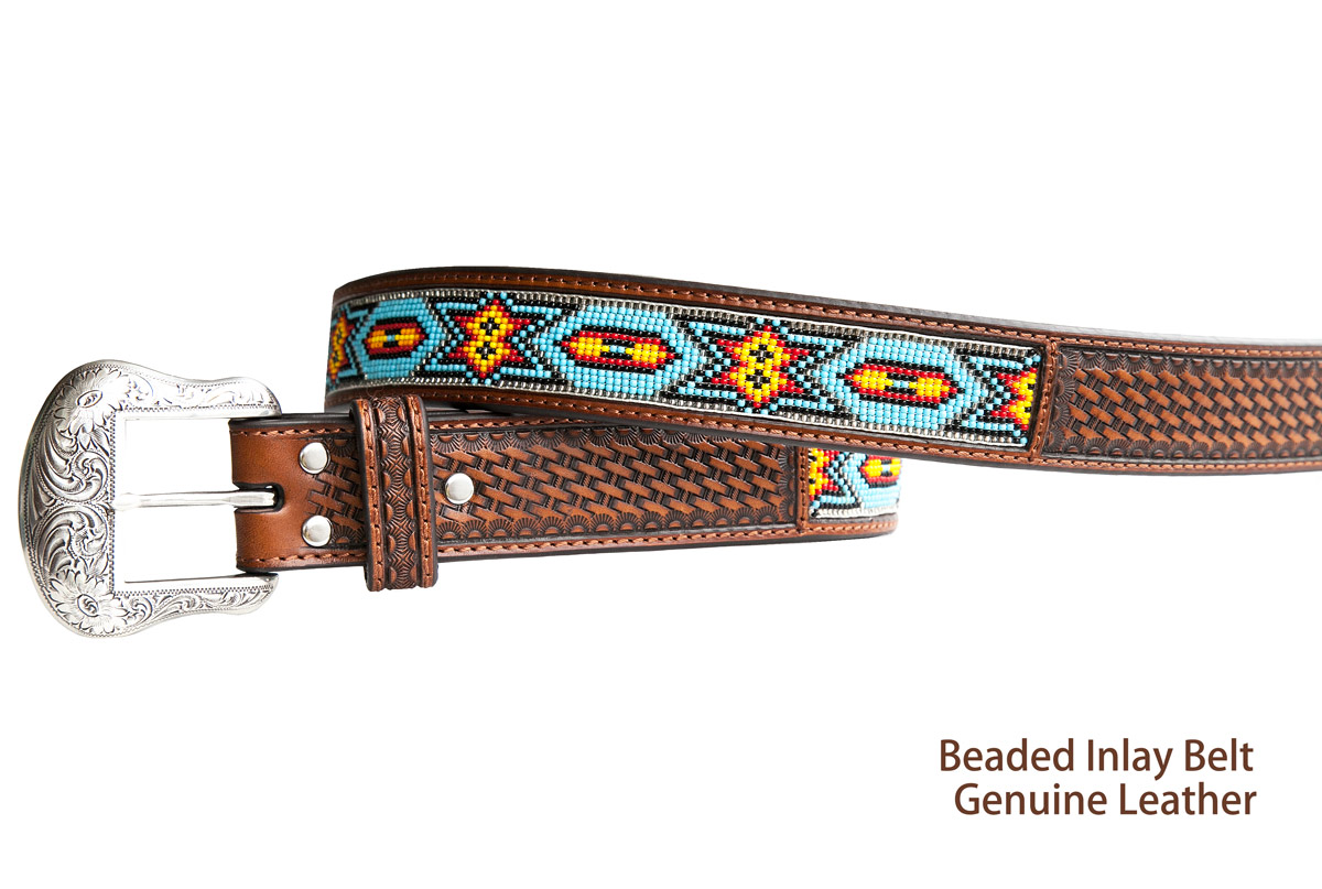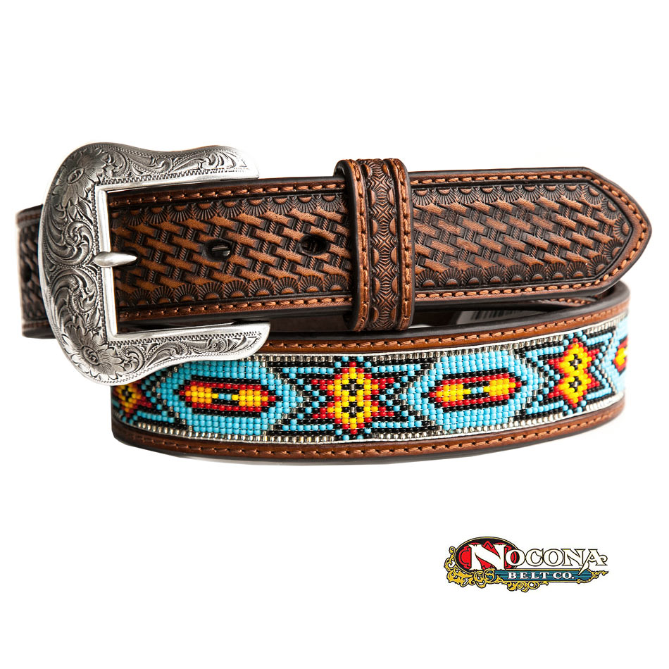 ビーズ ウエスタン レザーベルト(ブラウン・ターコイズ)/Nocona Beaded Inlay Western Leather Belt(Brown/Turq)