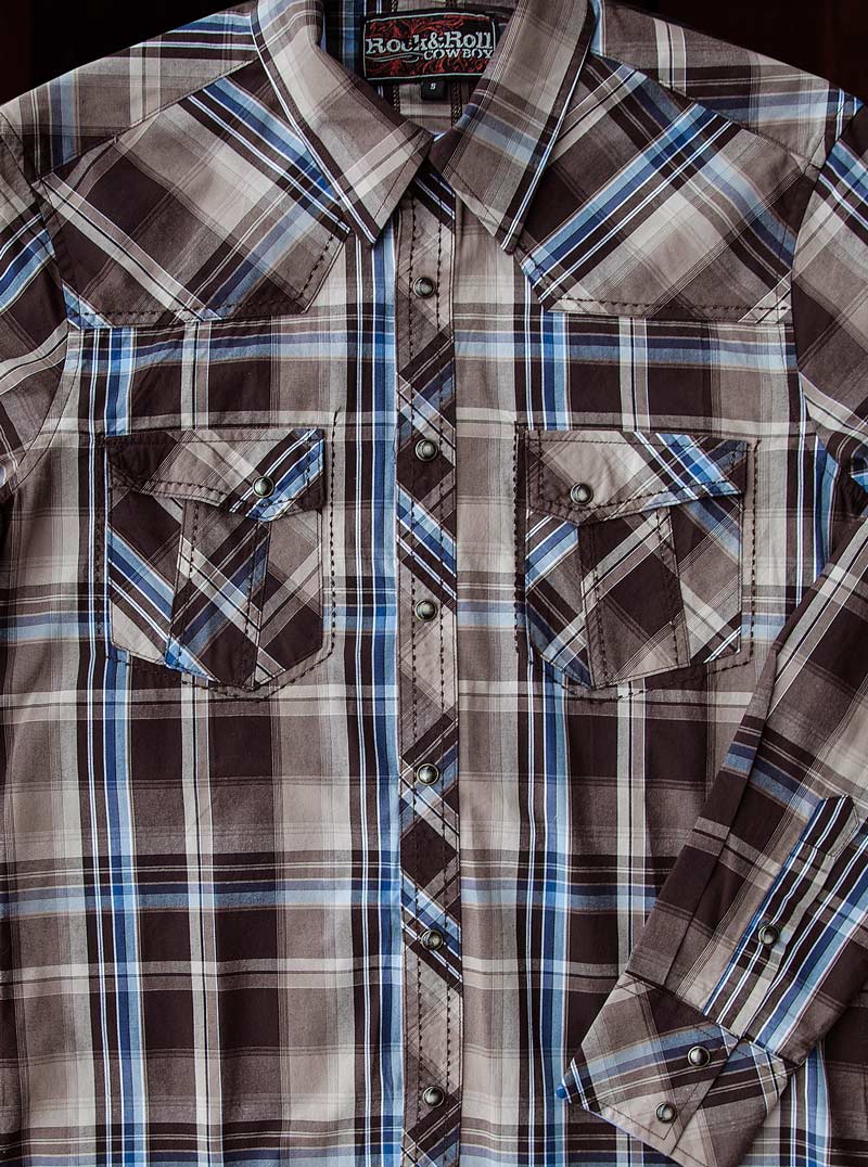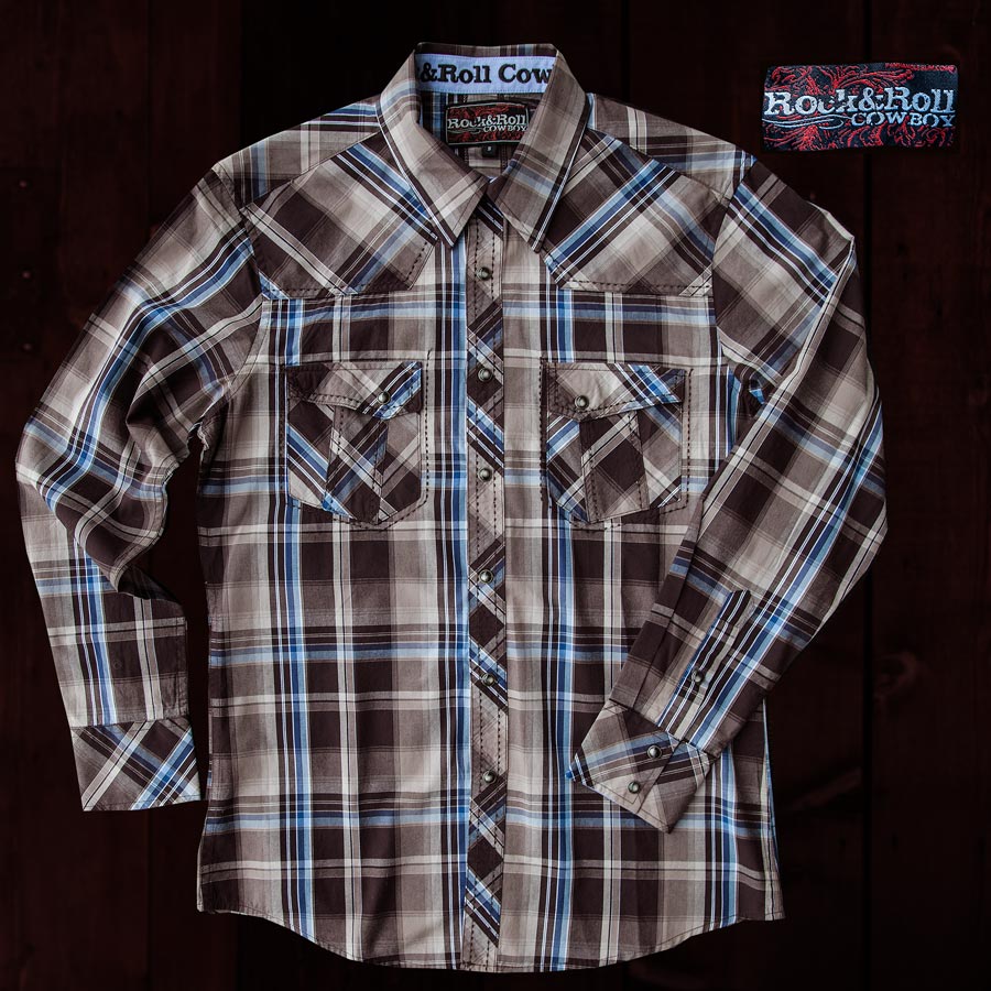 ロックンロール カウボーイ ウエスタンシャツ ブラウン・ブルー(長袖)/Panhandle Slim Long Sleeve Western Shirt
