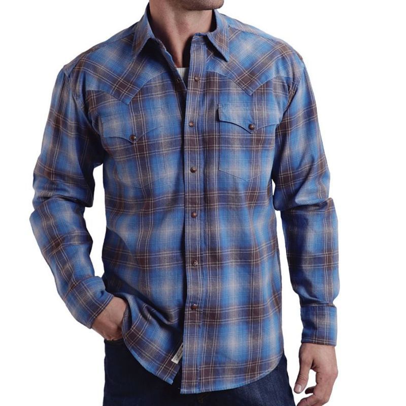 ステットソン フランネル ウエスタンシャツ(ブルー・ブラウン/長袖)S/Stetson Flannel Long Sleeve Western Shirt Blue/Brown Plaid [MAST33]