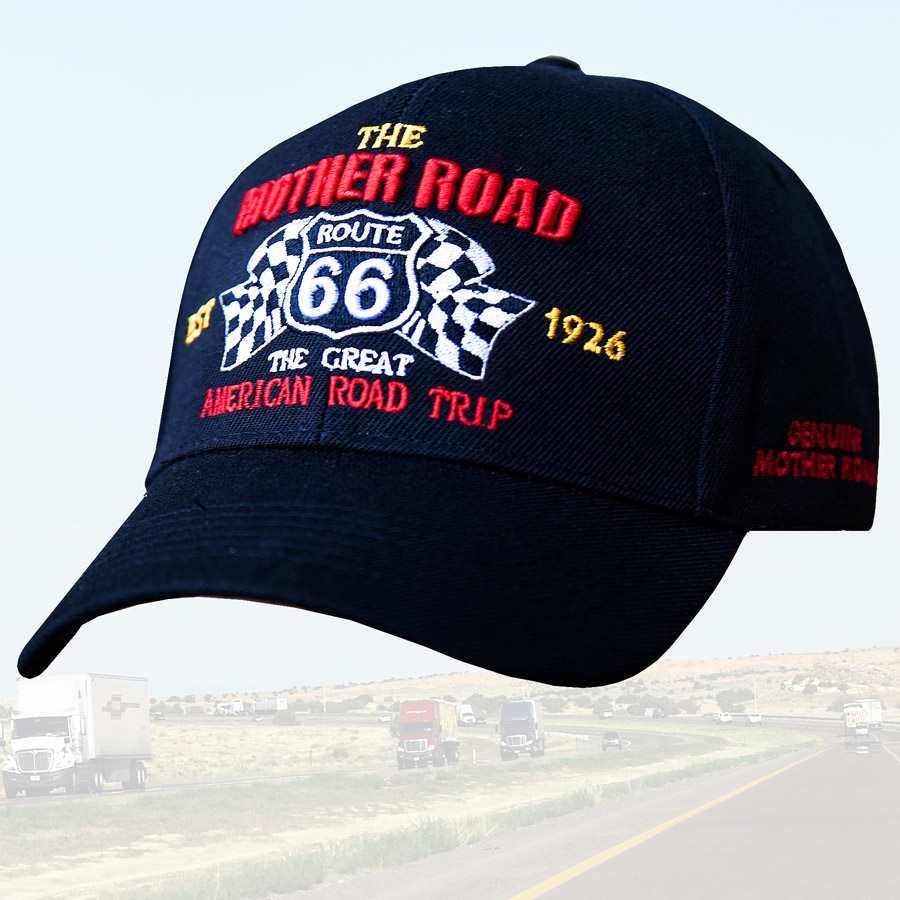ルート66 チェッカーフラッグ 刺繍 キャップ(ブラック)/Route 66 Cap(Black) GENUINE MOTHER ROAD