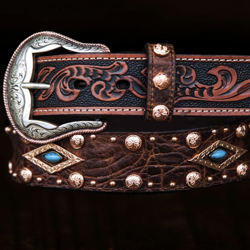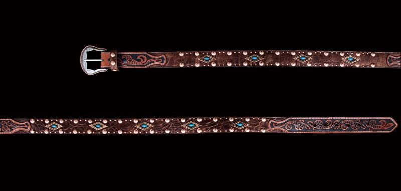 ウエスタン レザー ベルト(ブラウン・ターコイズ)/Western Leather Belt [CHKW29]