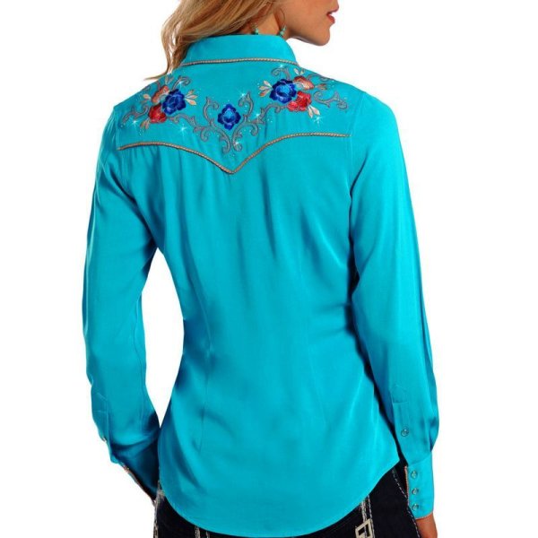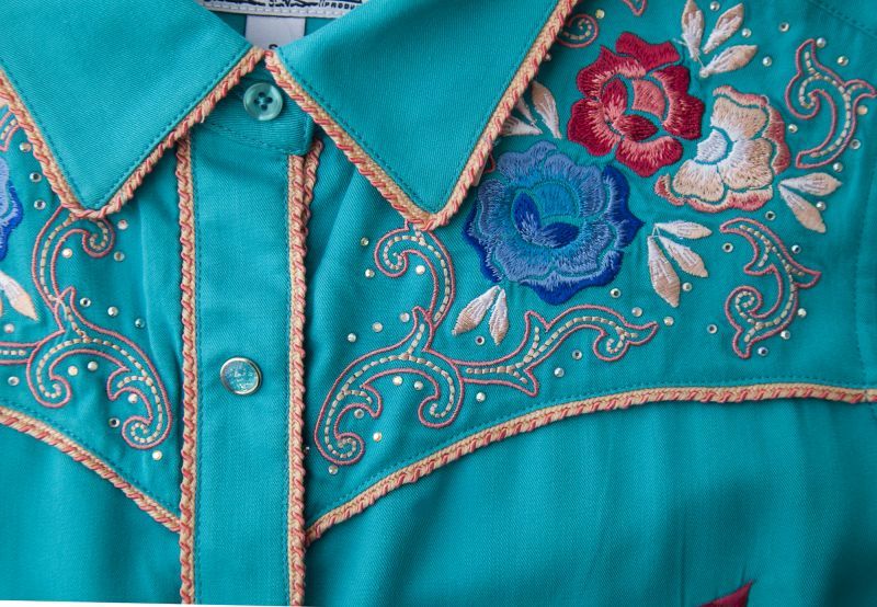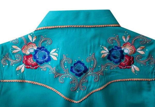 パンハンドルスリム フローラル刺繍・ラインストーン ウエスタン シャツ ブライトターコイズ(長袖/レディース)/Panhandle Slim Long Sleeve Western Shirt(Women's) [KMPM79]