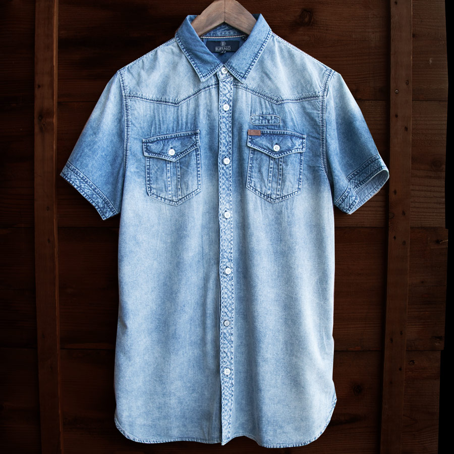 バッファロー デビッド ビトン 半袖 シャツ(ウオッシュブルー)/Buffalo David Bitton Short Sleeve Shirt [FBSY77]