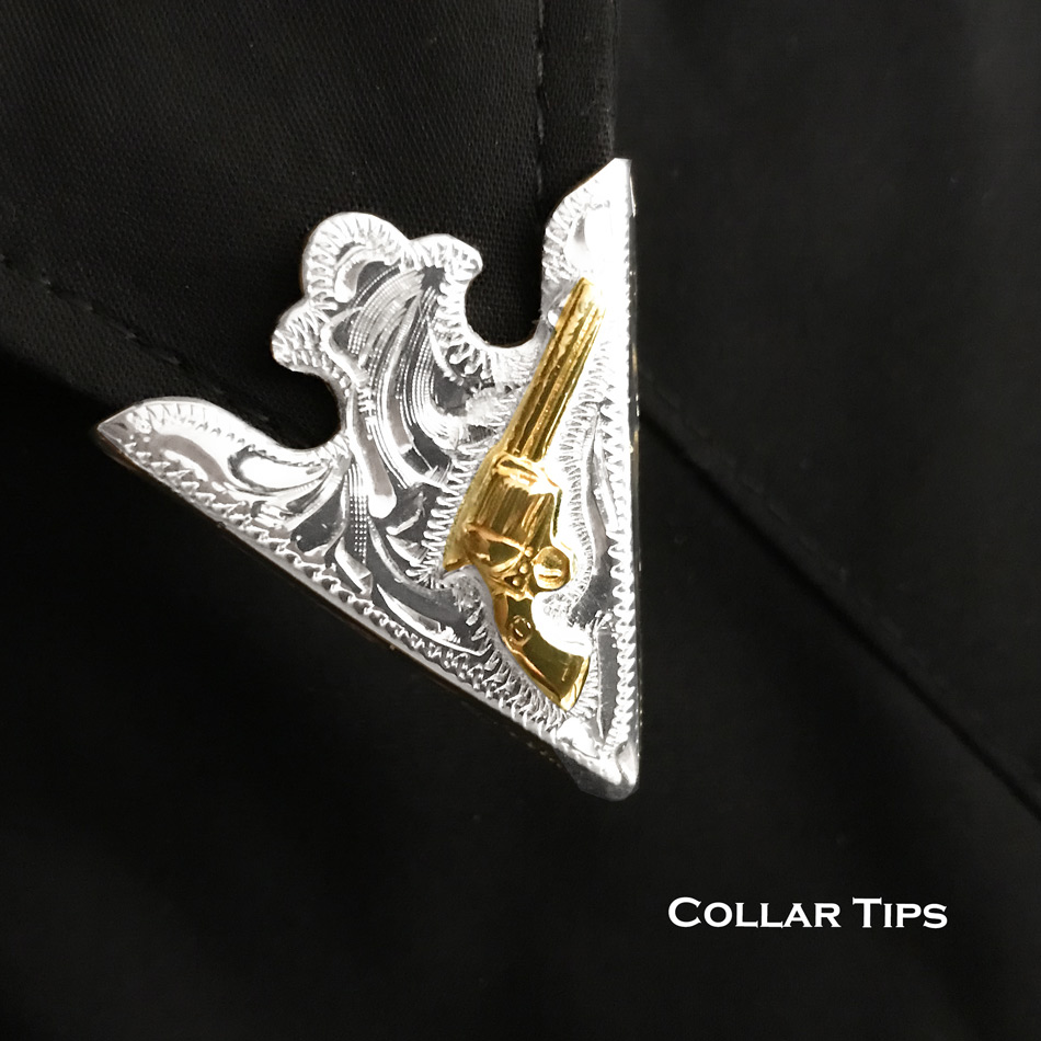 ウエスタン カラーチップ シルバー・ゴールドガン/Collar Tips Engraved Silver w/Gun
