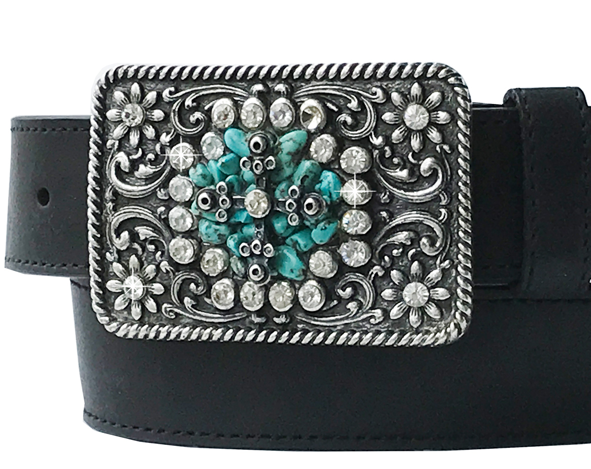 ノコナ ラインストーン&ターコイズ ベルト バックル(シルバー)/Nocona Belt Buckle
