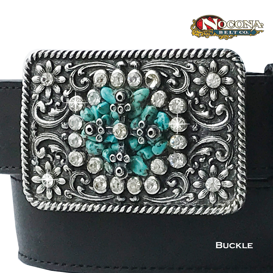 ノコナ ラインストーン&ターコイズ ベルト バックル(シルバー)/Nocona Belt Buckle [JWPS68]