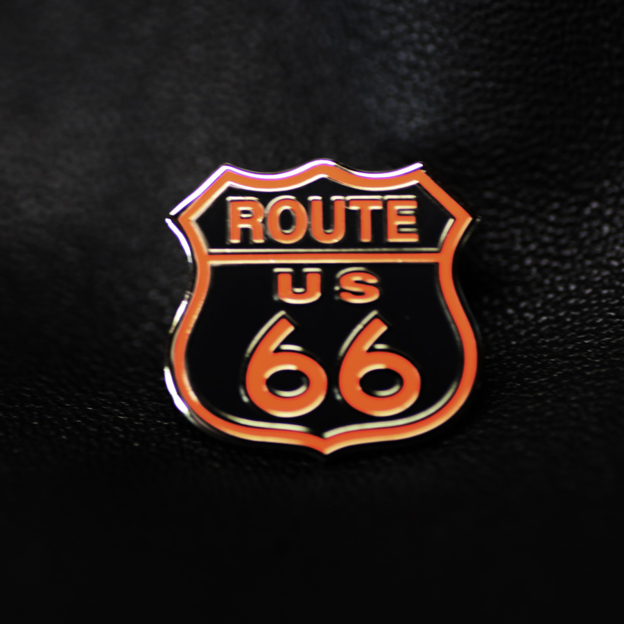 ルート66 ピンバッジ オレンジ・ブラック/Pin Route 66