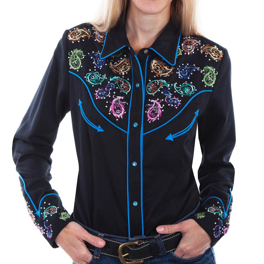 スカリー ペイズリー刺繍 ラインストーン ウエスタン シャツ(長袖/ブラック)S/Scully Long Sleeve Western Shirt(Women's)