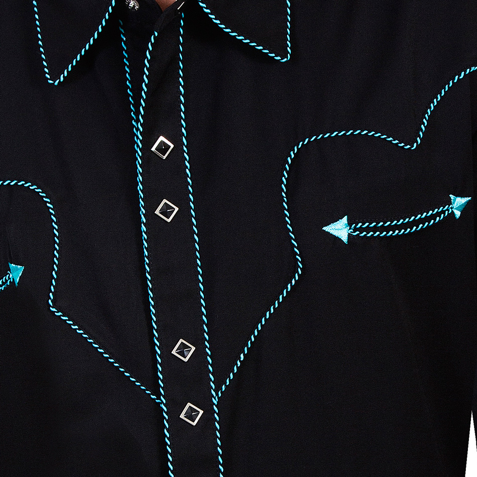 スカリー ウエスタン シャツ(長袖/ブラック・ホワイトキャンディケインパイピング)/Scully Long Sleeve Western Shirt(Men's)